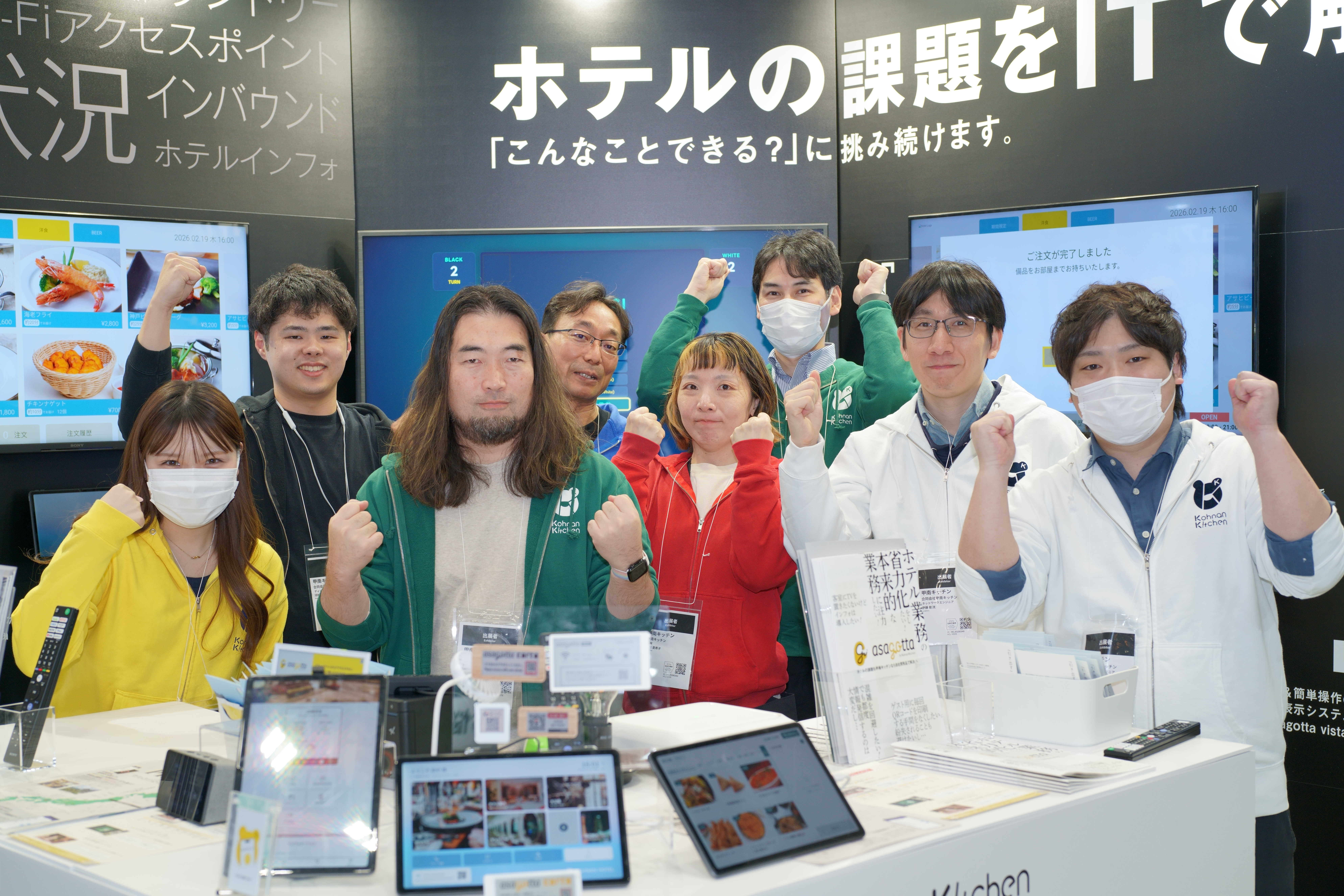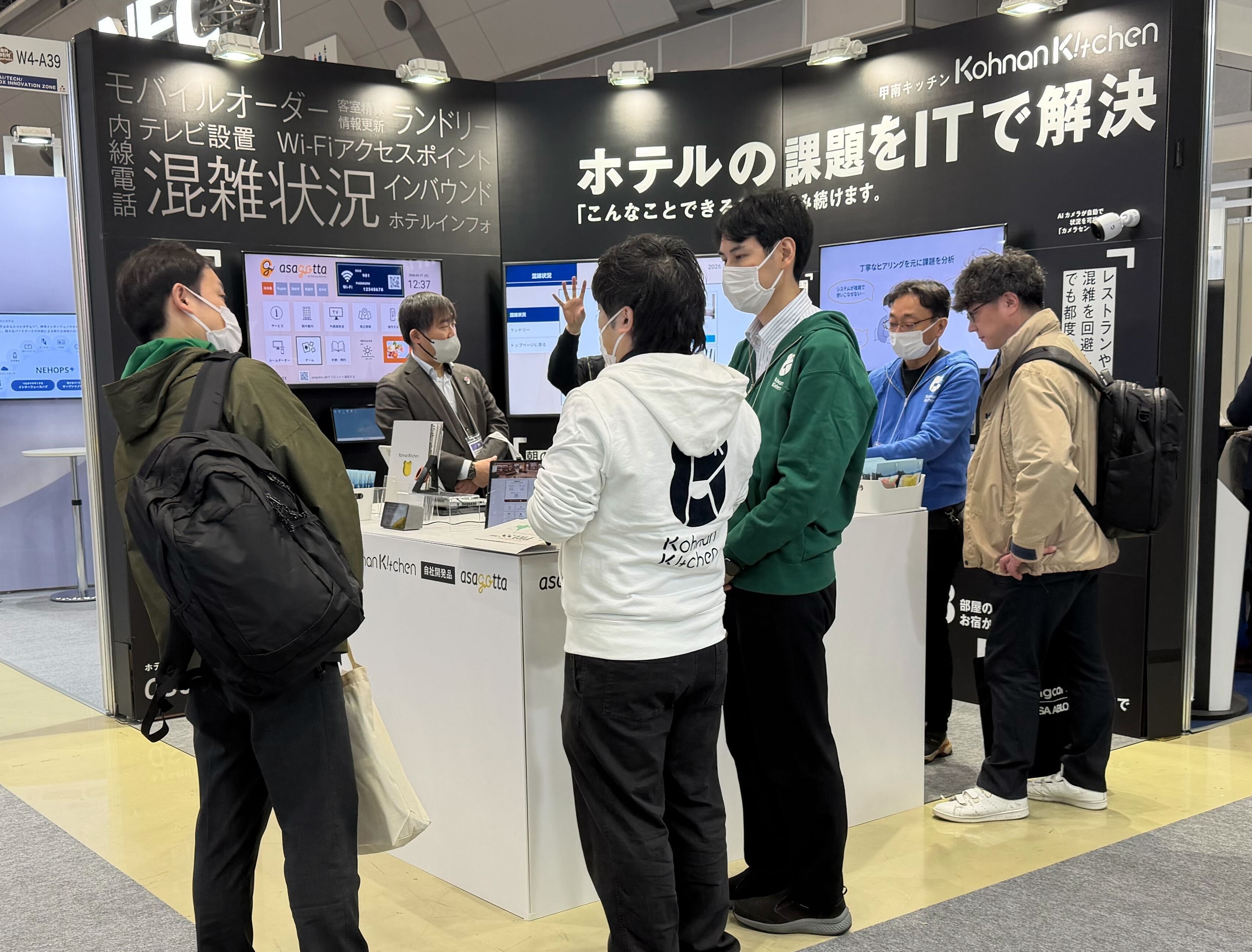 甲南キッチンブースでは、ホテルのDXを支援するasagottaシリーズの最新ラインナップを、実際にデモ機を操作していただきながらご紹介しました。